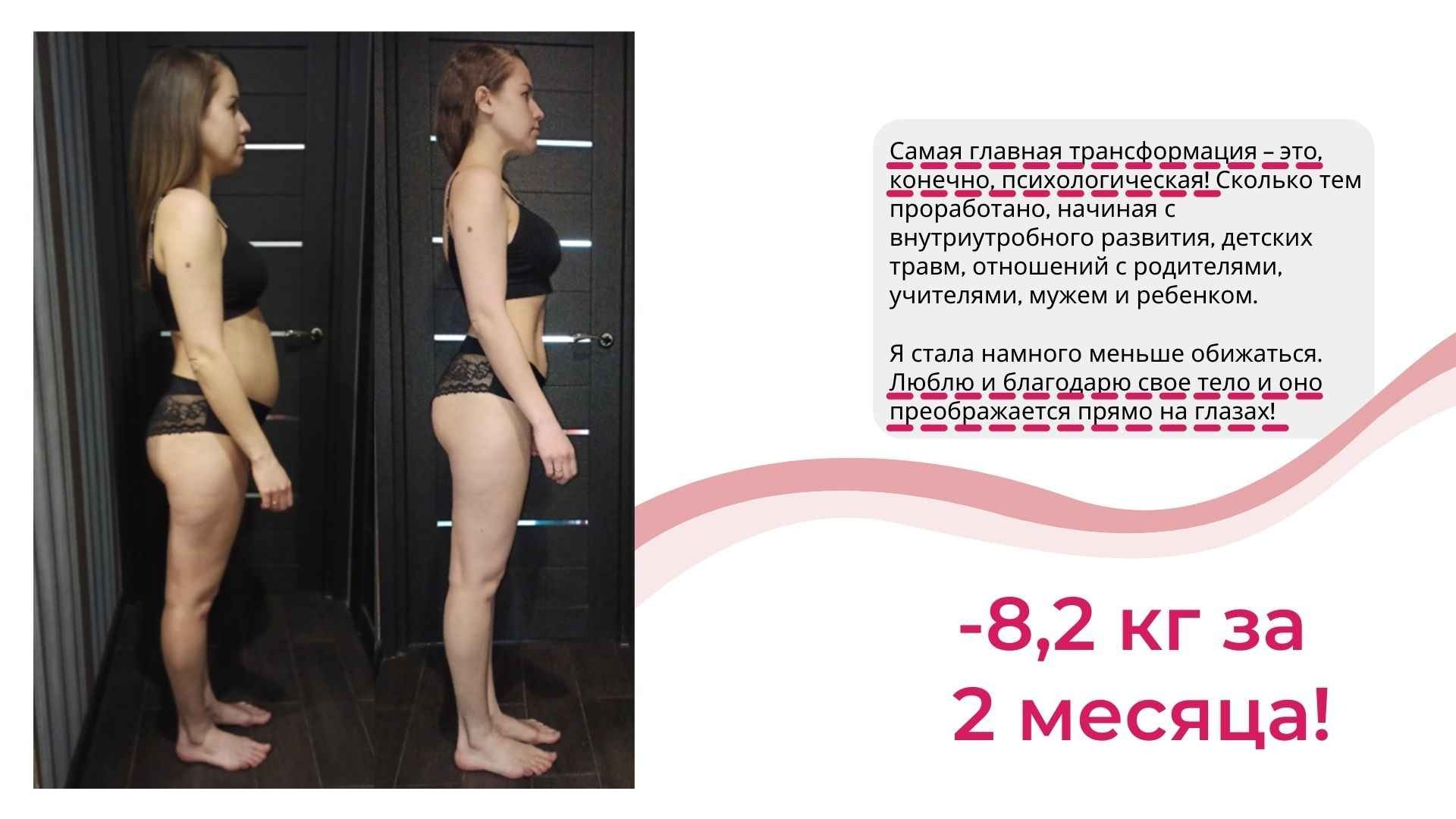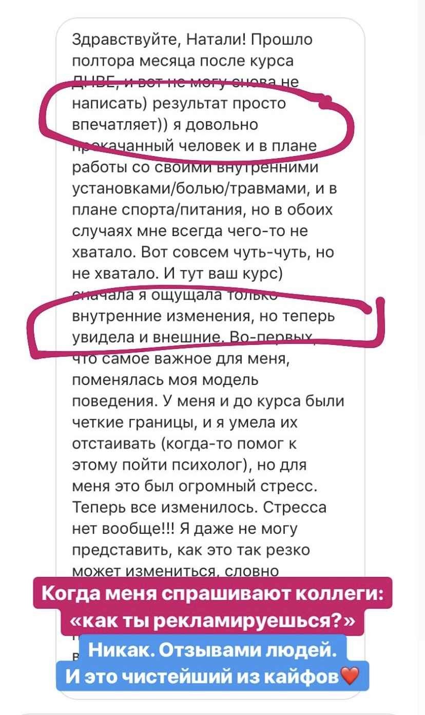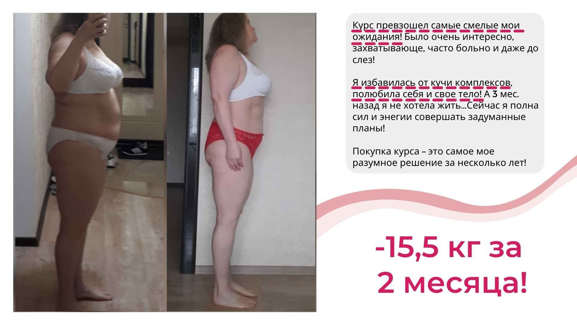 Это курс не про «повтори мой успех, смотри на меня и делай как я», а про Ваш собственный индивидуальный путь к своему новому телу.