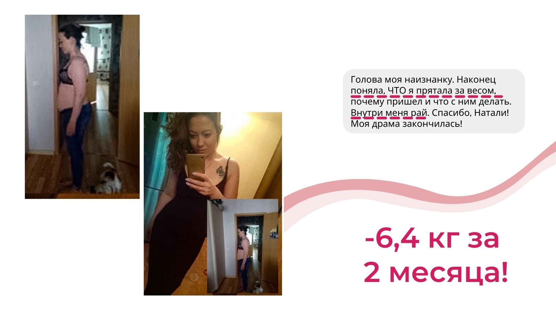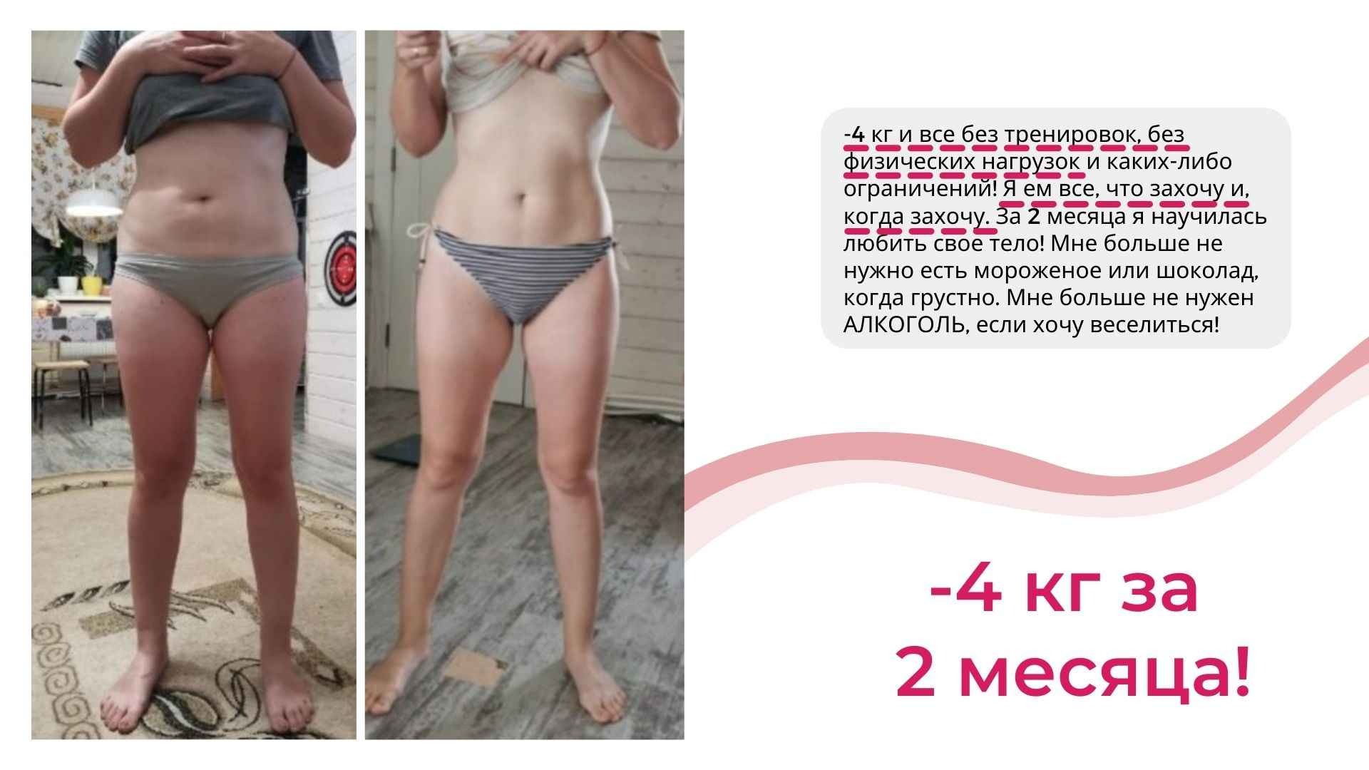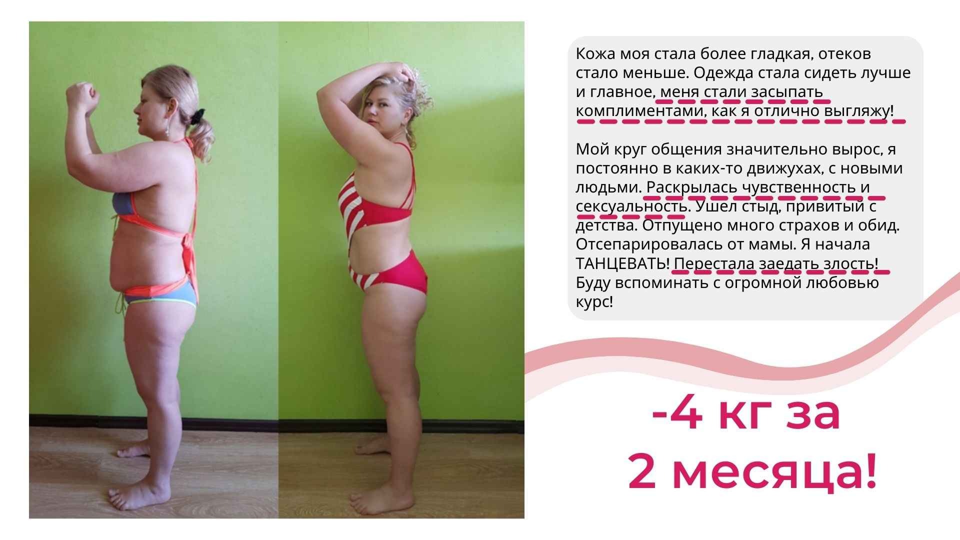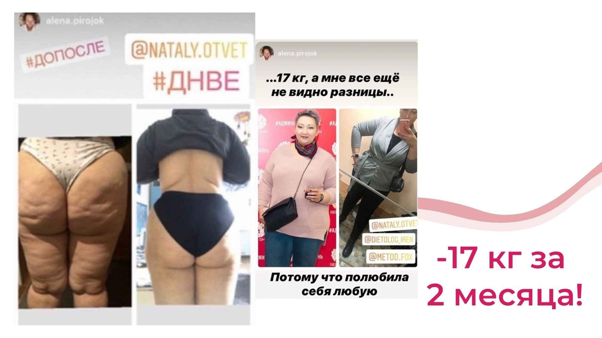 Это курс не про «повтори мой успех, смотри на меня и делай как я», а про Ваш собственный индивидуальный путь к своему новому телу.