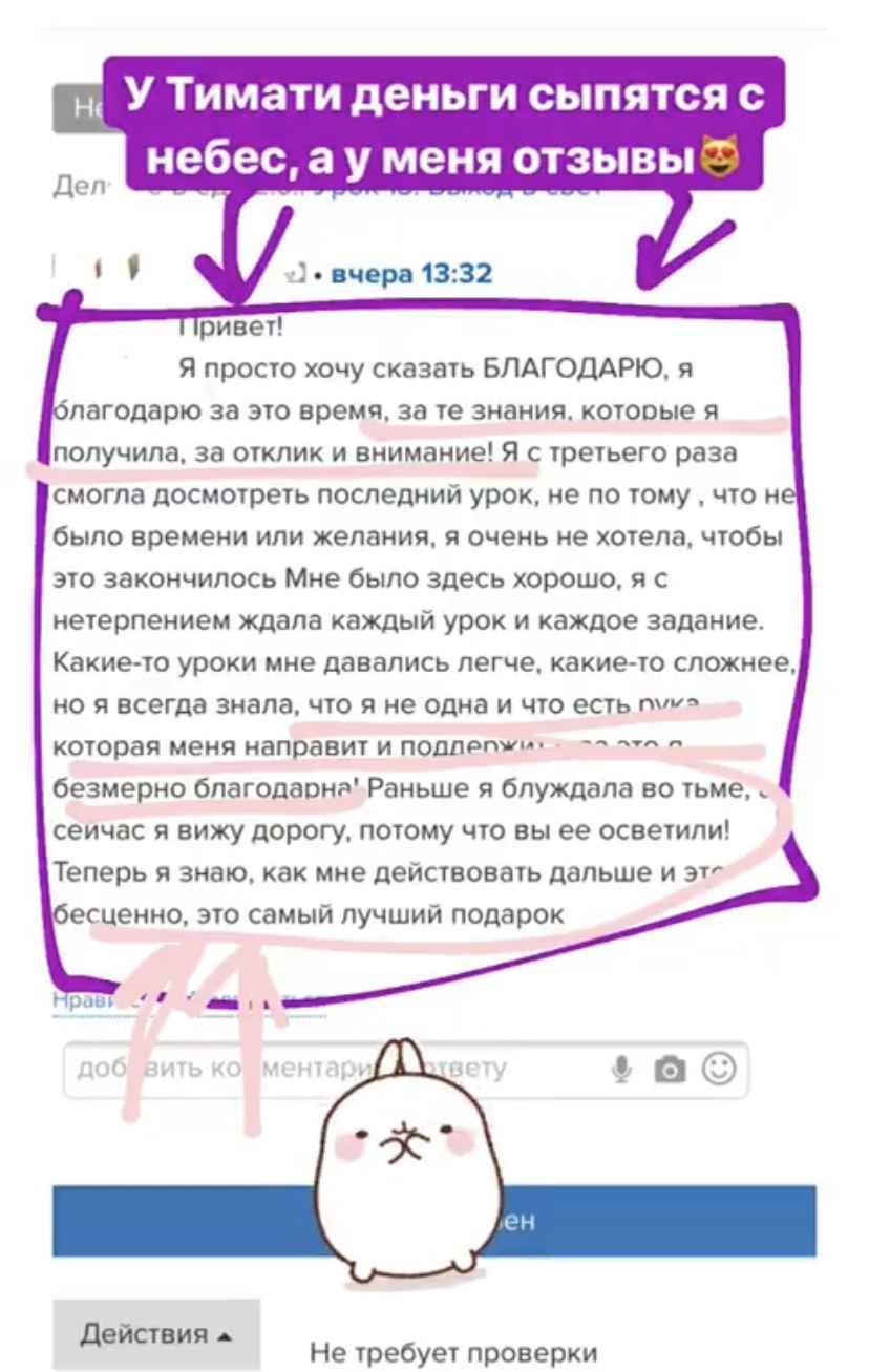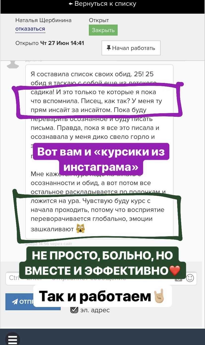 Не бойтесь пробовать новое! Логично ведь, что только новые действия могут привести к новым результатам? Наши психологи и техническая поддержка всегда на связи. Вас никто не оставит в одиночестве с Вашей проблемой. В курсе все учтено для того, чтобы Вы с максимальной эффективностью смогли легко усвоить необходимые знания и уложить их внутри себя