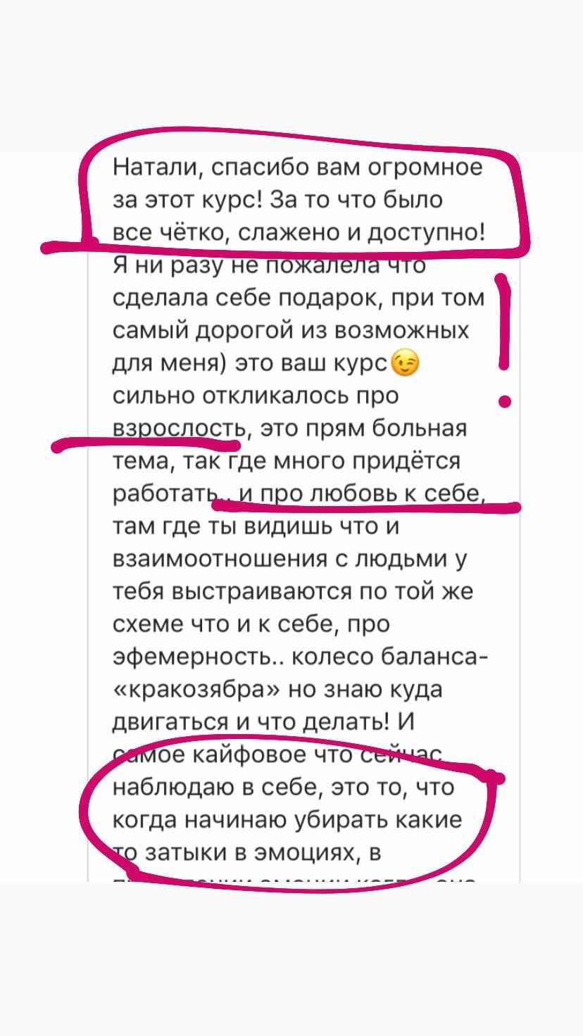 А сколько стоит одна часовая консультация у хорошего психолога? От 5 000 руб. В 90% случаев Вы не сможете глубоко проработать вопрос за одну консультацию. На курсе у Вас будет возможность больше месяца работать с личным психологом.