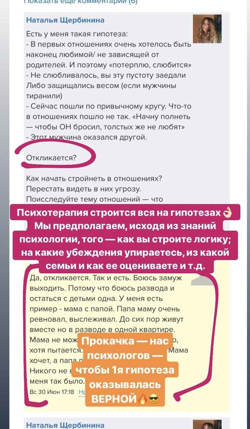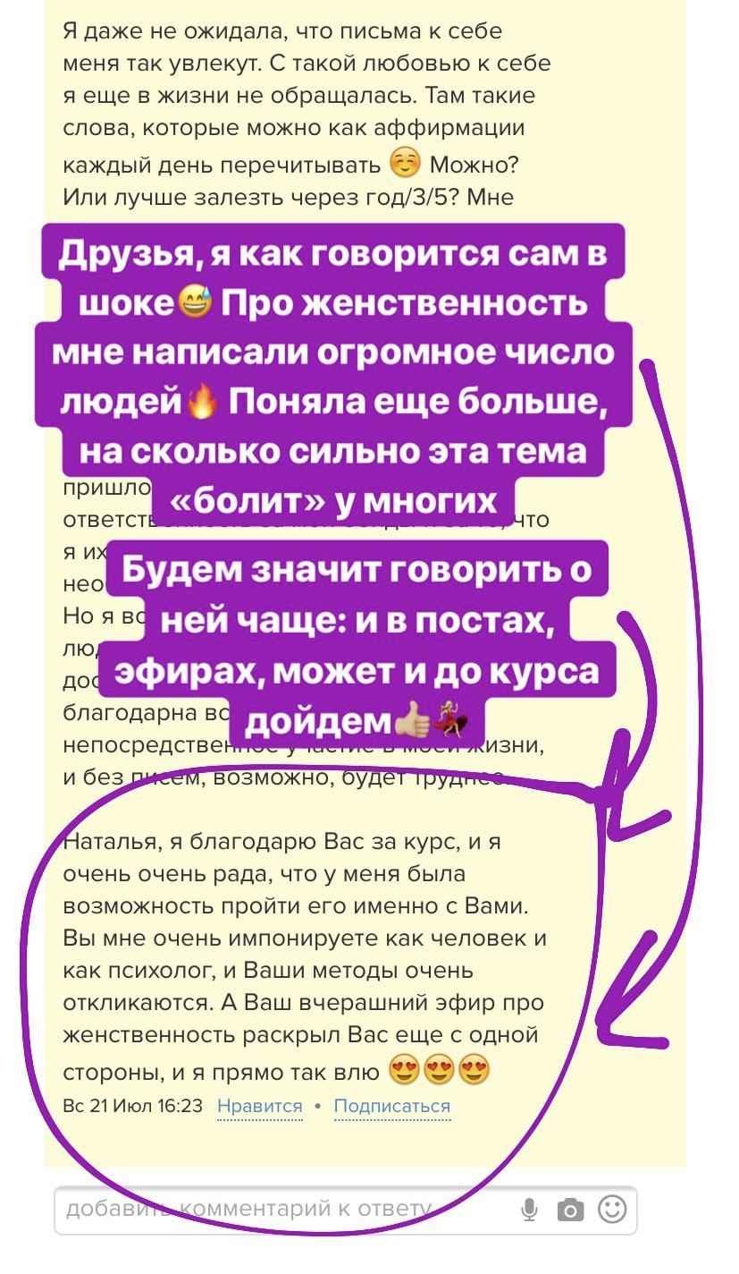 Психолог максимально вникнет в Вашу ситуацию и поможет достичь поставленных целей. Вы получите ежедневную обратную связь и поддержку, полные и содержательные ответы на любые вопросы по теме.