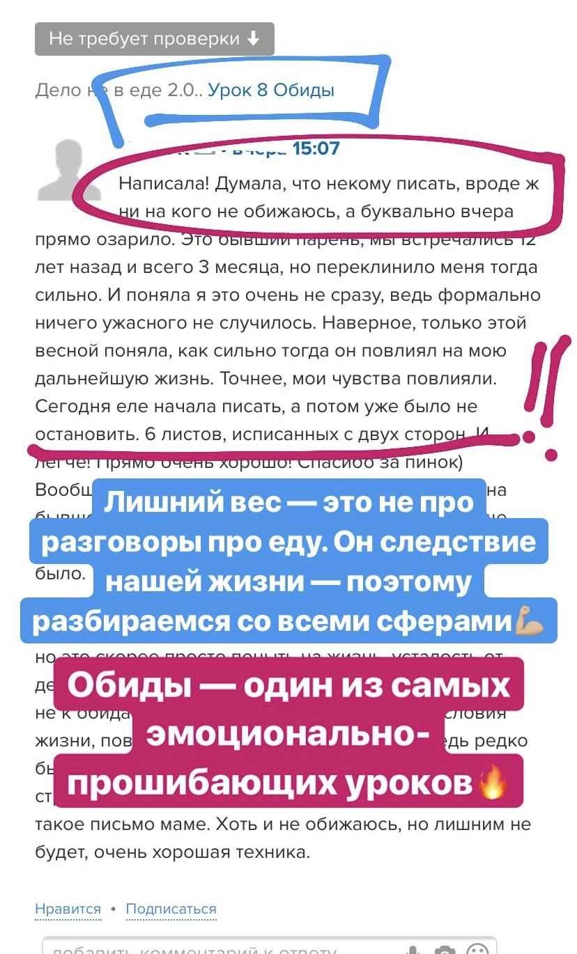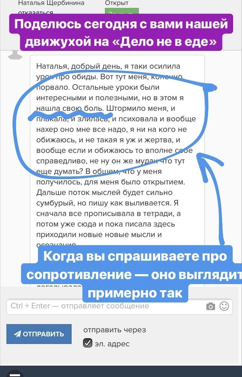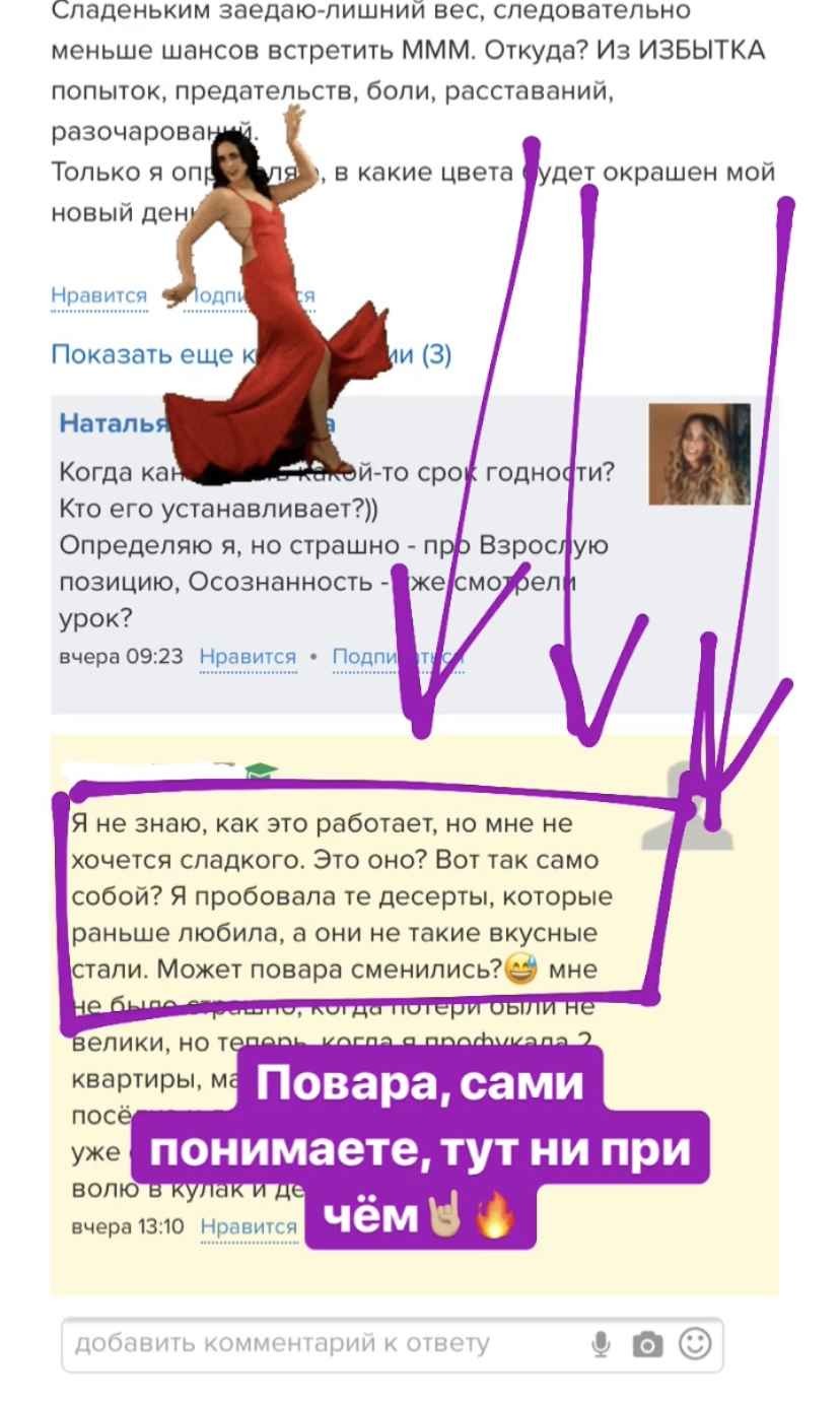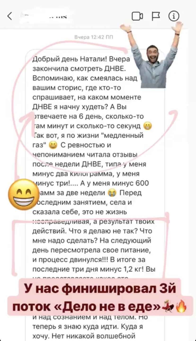 Дело не в еде — это не просто набор записанных видеоуроков. Это хорошо продуманная живая система, в рамках которой будут проходить живые онлайн-встречи с автором курса для разбора всех Ваших вопросов.