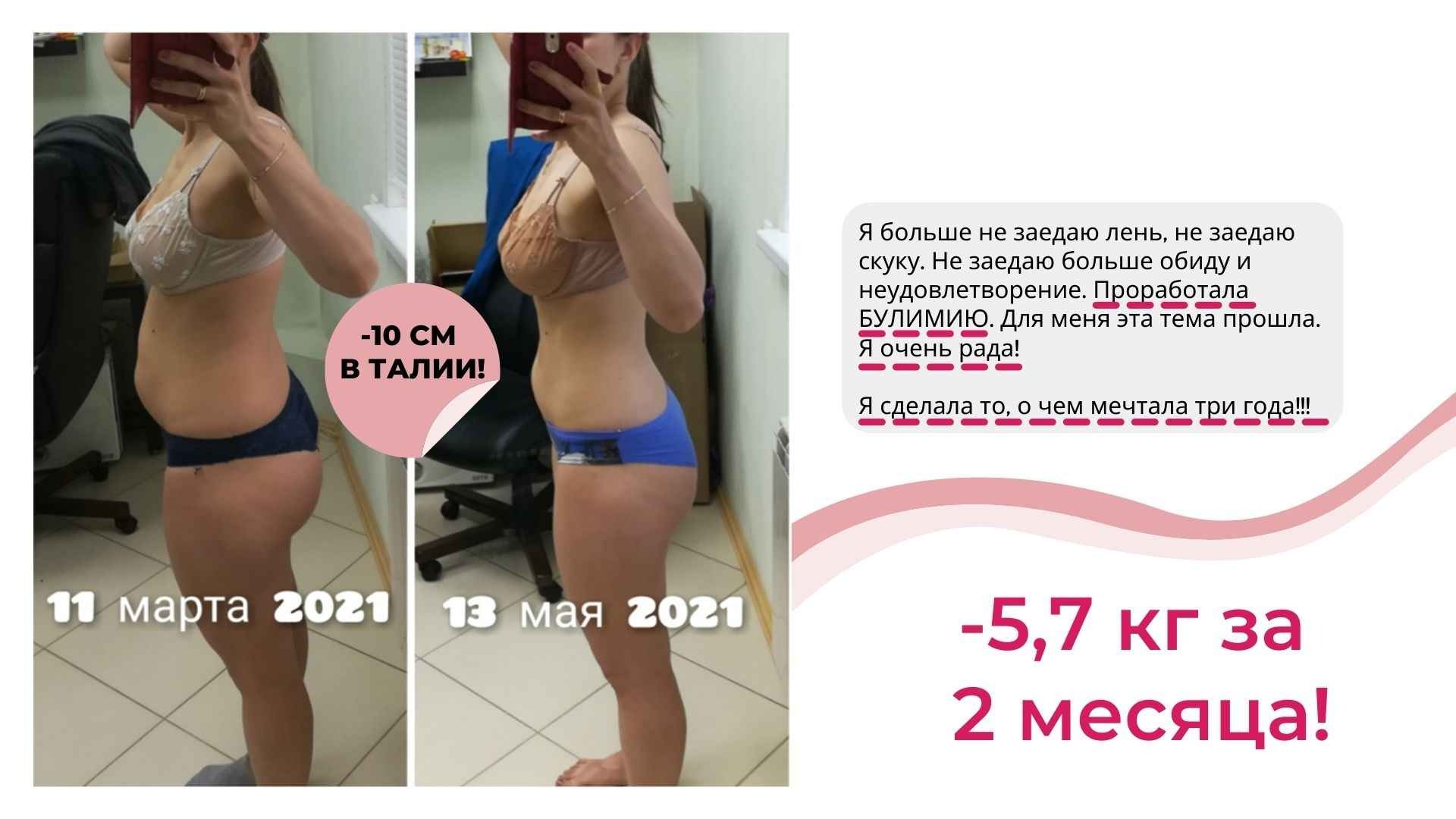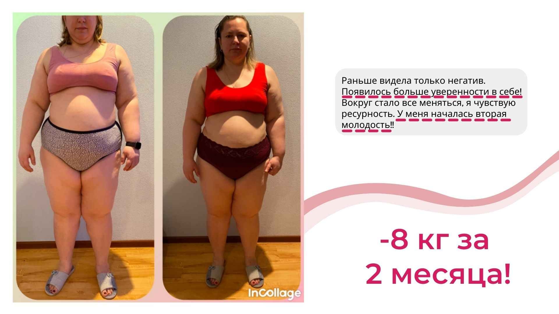 Ваш успех неизбежен — Вы в кратчайшие сроки не только начнете терять вес и объемы, но и «подтянете» нужные сферы своей жизни и сделаете ее гармоничной и счастливой.