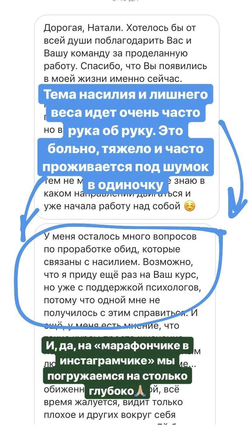 Абонемент в фитнес-клуб обойдется Вам в 20-100 тысяч рублей в год. А если заниматься с тренером индивидуально, то цифры смело можно умножить на 5. Это намного дороже, чем занятия на курсе «Дело не в еде», проходя который, невозможно не измениться.